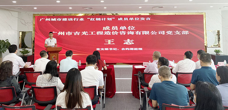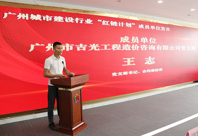 啟動式上,廣州市吉光工程造價咨詢有限公司黨支部被授予廣州城市建設行業(yè)“紅鏈計劃”成員單位(圖1)。吉光黨支部書記王志同志作為“紅鏈計劃”成員企業(yè)代表在啟動式上發(fā)言(圖2、3),他表示鏈成員企業(yè)將按照廣州城市建設行業(yè)“紅鏈計劃”工作要求,以黨建為引領,發(fā)揮企業(yè)自身優(yōu)勢,積極配合各級黨委和政府推動政企之間、企業(yè)之間形成協(xié)同關系,共同推動黨組織共建、陣地共享、活動共辦、黨員共訓、難題共解、合作共贏的發(fā)展模式,推動“鏈”內(nèi)非公企業(yè)健康發(fā)展,實現(xiàn)黨建工作質量和經(jīng)濟發(fā)展水平整體提升。